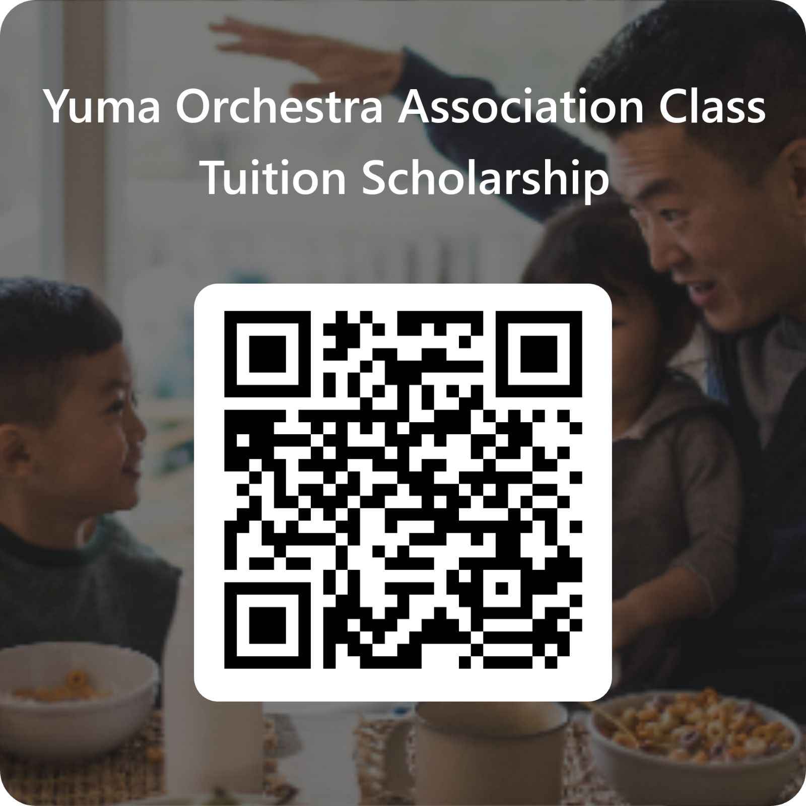 Click on this link to apply for a Yuma Orchestra Association Class Tuition Scholarship below, or scan the QR code provided below.